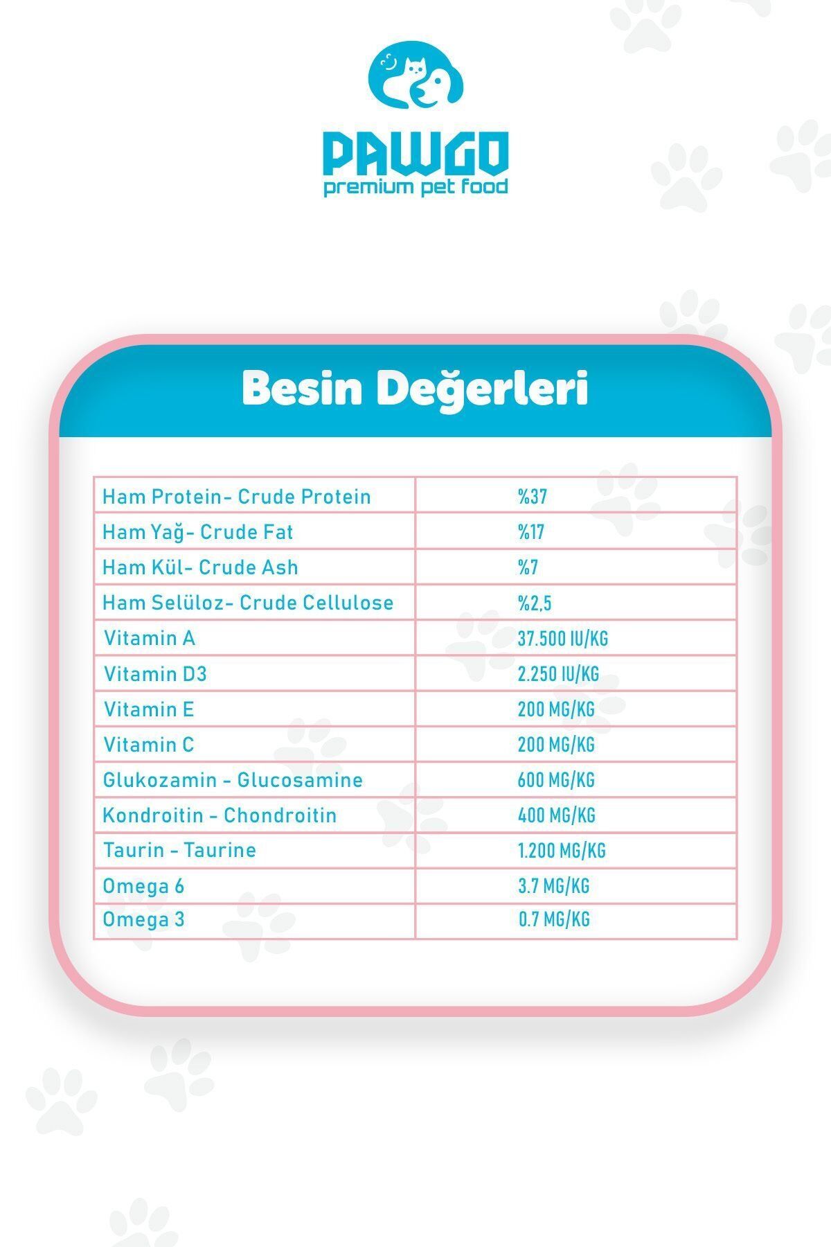 Onların ihtiyaçlarına özel olarak tasarlanan bu premium mama, pawgo’nun kalite ve güvencesiyle evinizdeki en değerli üye için ideal bir tercih sunar.